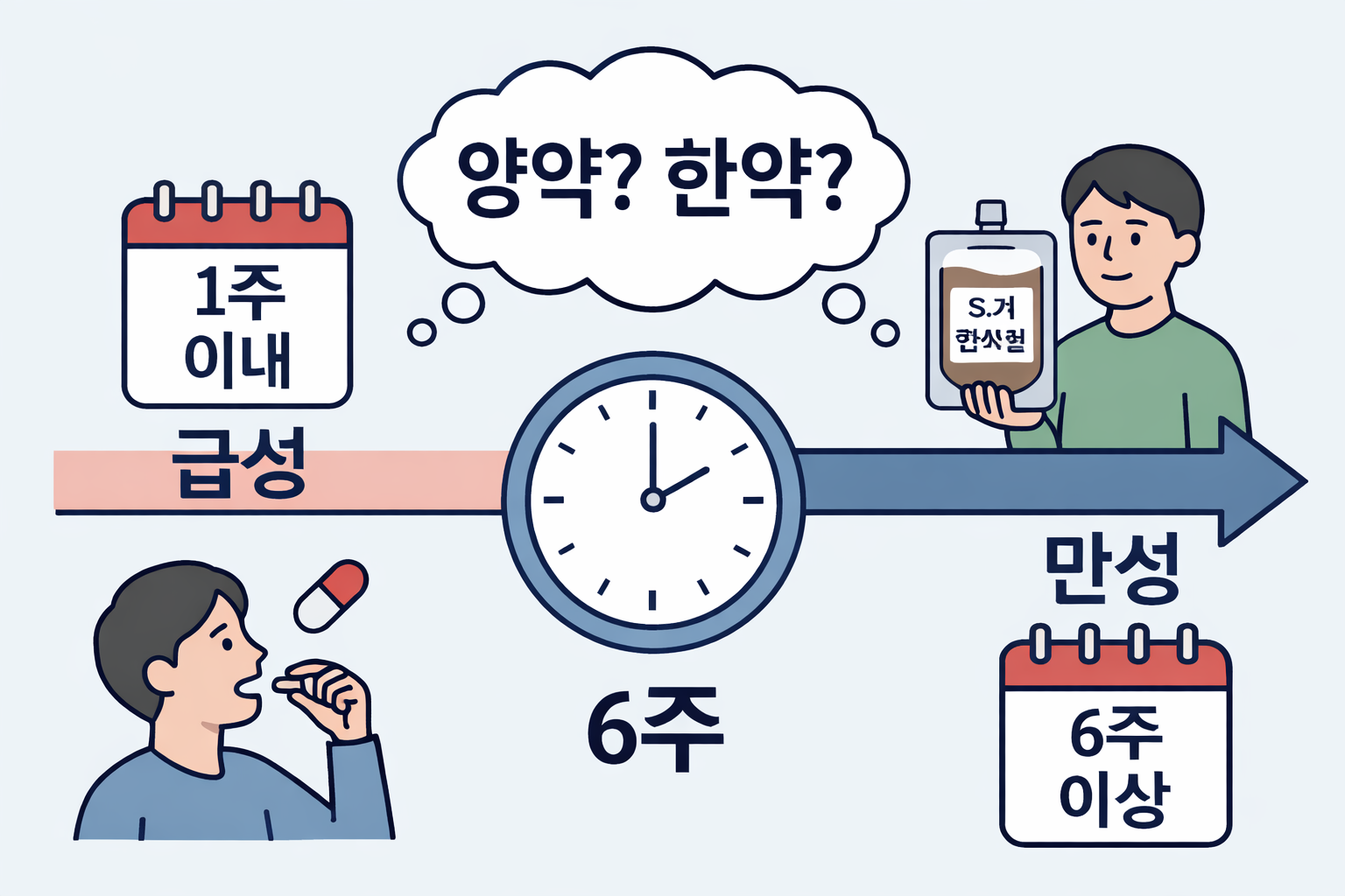 3) 6주 이상 지속(만성): 보통은 양한방 병행이 가장 효과적입니다.